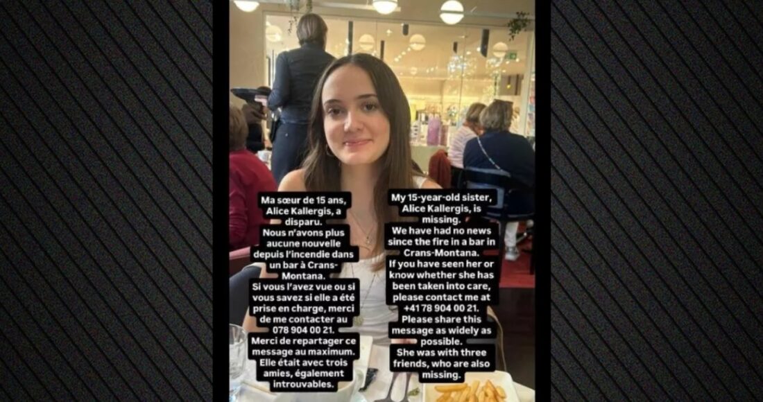 Σε αγώνα δρόμου για τον εντοπισμό μιας ανήλικης ελληνικής καταγωγής έχουν επιδοθεί συγγενείς και φίλοι, μετά την καταστροφική πυρκαγιά που εκδηλώθηκε στο μπαρ «Le Constellation», στο Κραν Μοντανά της Ελβετίας. Η 15χρονη φέρεται να βρισκόταν στον χώρο τη στιγμή που ξέσπασε η φωτιά, με την οικογένειά της να απευθύνει δημόσιες εκκλήσεις μέσω των social media για οποιαδήποτε πληροφορία.