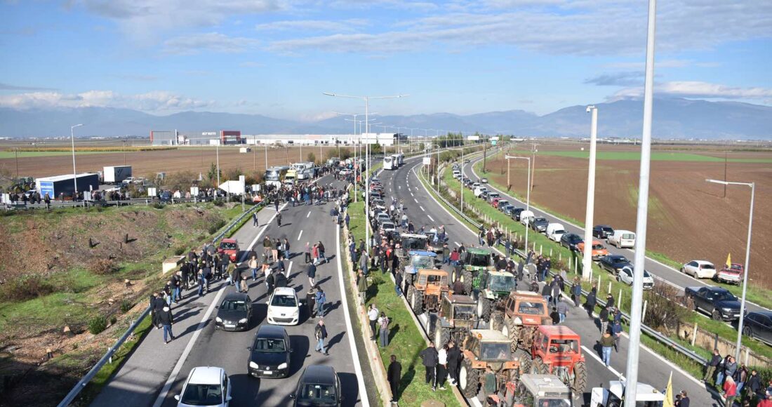 Εκατοντάδες τρακτέρ έχουν κλείσει τον δρόμο στον κόμβο της Νίκαιας. Στο σημείο παραμένουν αυξημένες αστυνομικές δυνάμεις με το κλίμα να είναι ακόμη αρκετά έντονο.