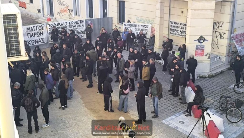 Έξω από το δικαστήριο της Καρδίτσας είχαν συγκεντρωθεί συγγενείς και φίλοι της οικογένειας και του Βασίλη Μάγγου, όπως και μέλη συλλογικοτήτων, που πραγματοποίησαν πορεία μετά την απόφαση της διακοπής στο κέντρο της Καρδίτσας, ενώ ισχυρή ήταν η αστυνομική δύναμη έξω από το δικαστικό μέγαρο.