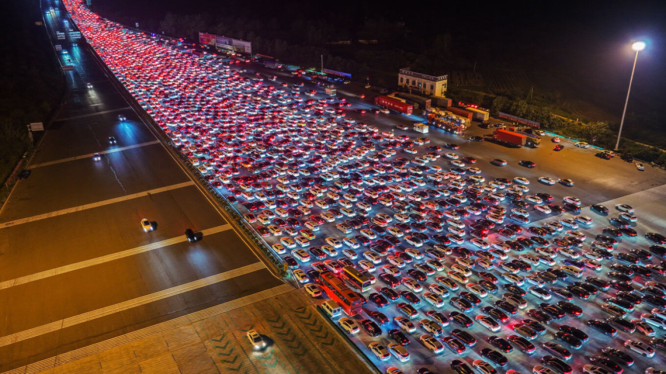 Βίντεο που κυκλοφόρησαν δείχνουν τον σταθμό διοδίων Γουζουάνγκ, ο οποίος διαθέτει 36 λωρίδες, να… λάμπει μέσα στη νύχτα από τα κόκκινα πίσω φώτα αμέτρητων αυτοκινήτων, που περίμεναν να περάσουν. Σύμφωνα με τις Αρχές, μόνο την τελευταία ημέρα των διακοπών, περισσότερα από 120.000 οχήματα πέρασαν από το σημείο.