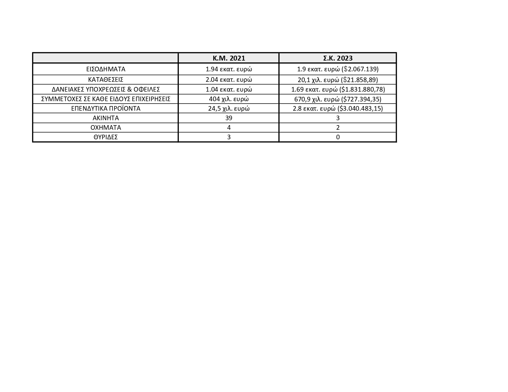 Ενώ σε επενδυτικά προϊόντα έχει τοποθετημένα 2,8 εκατ. ευρώ.
