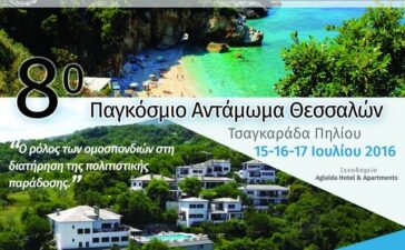 Στην Τσαγκαράδα Πηλίου στις 15, 16 και 17 Ιουλίου 2016 (ξενοδοχείο “Aglaida Hotel & Apartments”), θα πραγματοποιηθεί το 8ο Παγκόσμιο Αντάμωμα Θεσσαλών, που διοργανώνει η...