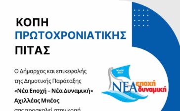 Η Πρωτοχρονιάτικη πίτα της αυτοδιοικητικής παράταξης - Νέα Εποχή - Νέα Δυναμική του Δημάρχου Βόλου, Αχιλλέα Μπέου, θα κοπεί σήμερα, Δευτέρα 19 Φεβρουαρίου, στην εκδήλωση...