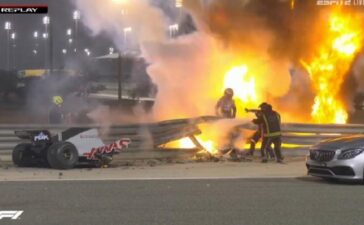 Σοκαριστικό ατύχημα στο Γκραν Πρι του Μπαχρέιν! Ο Ρομέν Γκροζάν είχε... Άγιο, αφού μετά από σύγκρουση με τον Ντάνιλ Κβίατ, το μονοθέσιό του έφυγε εκτός...