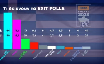 Ιστορική νίκη της ΝΔ σκιαγραφεί το πρώτο exit poll, δίνοντάς της ποσοστό 40 με 44%. Στη βουλή με βάση αυτό το exit poll μπαίνουν 9...