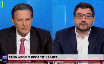 Στην τηλεόραση του ΑΝΤ1 φιλοξενήθηκαν το απόγευμα της Τετάρτης ο υποψήφιος βουλευτής Επικρατείας της Νέας Δημοκρατίας και αναπληρωτής υπουργός Οικονομικών Θεόδωρος Σκυλακάκης και ο υποψήφιος βουλευτής του ΣΥΡΙΖΑ Νάσος Ηλιόπουλος. Οι δυο...