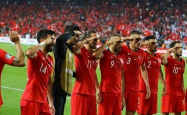 Για δεύτερη φορά μέσα σε λίγες ημέρες, οι ποδοσφαιριστές της Εθνικής ομάδας της Τουρκίας, πανηγύρισαν στρατιωτικά την επίτευξη ενός τέρματός τους, στα προκριματικά του Euro...