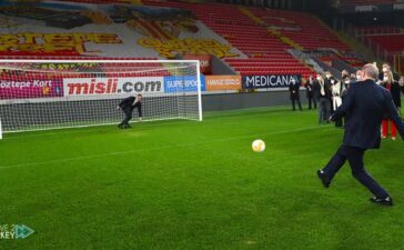 «Πέναλτι» εκτέλεσε ο Τούρκος πρόεδρος, Ρετζέπ Ταγίπ Ερντογάν, όταν επισκέφθηκε το γήπεδο της ομάδας Goztepe S.K για τα εγκαίνια του. Με το κοστούμι του κλωτσάει...