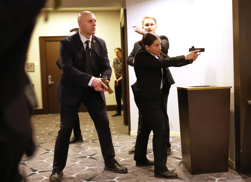 Οι πράκτορες του FBI απάντησαν με καταιγισμό πυρών, που ακούστηκαν μέσα στην αίθουσα, με αποτέλεσμα να επικρατήσει πανικός, όπως φαίνεται και στα σχετικά βίντεο που κυκλοφόρησαν, με τους αξιωματικούς να σπεύδουν να απομακρύνουν τον Ντόναλντ Τραμπ, τη Μελάνια Τραμπ, τον αντιπρόεδρο Τζέι Ντι Βανς και μέλη του υπουργικού συμβουλίου που βρίσκονταν εκεί.