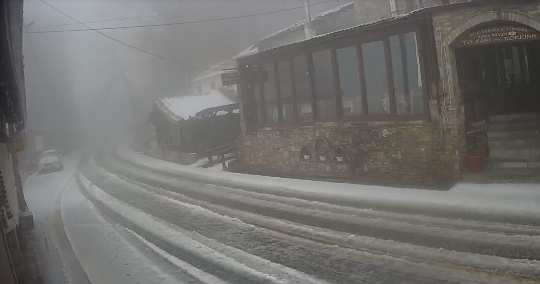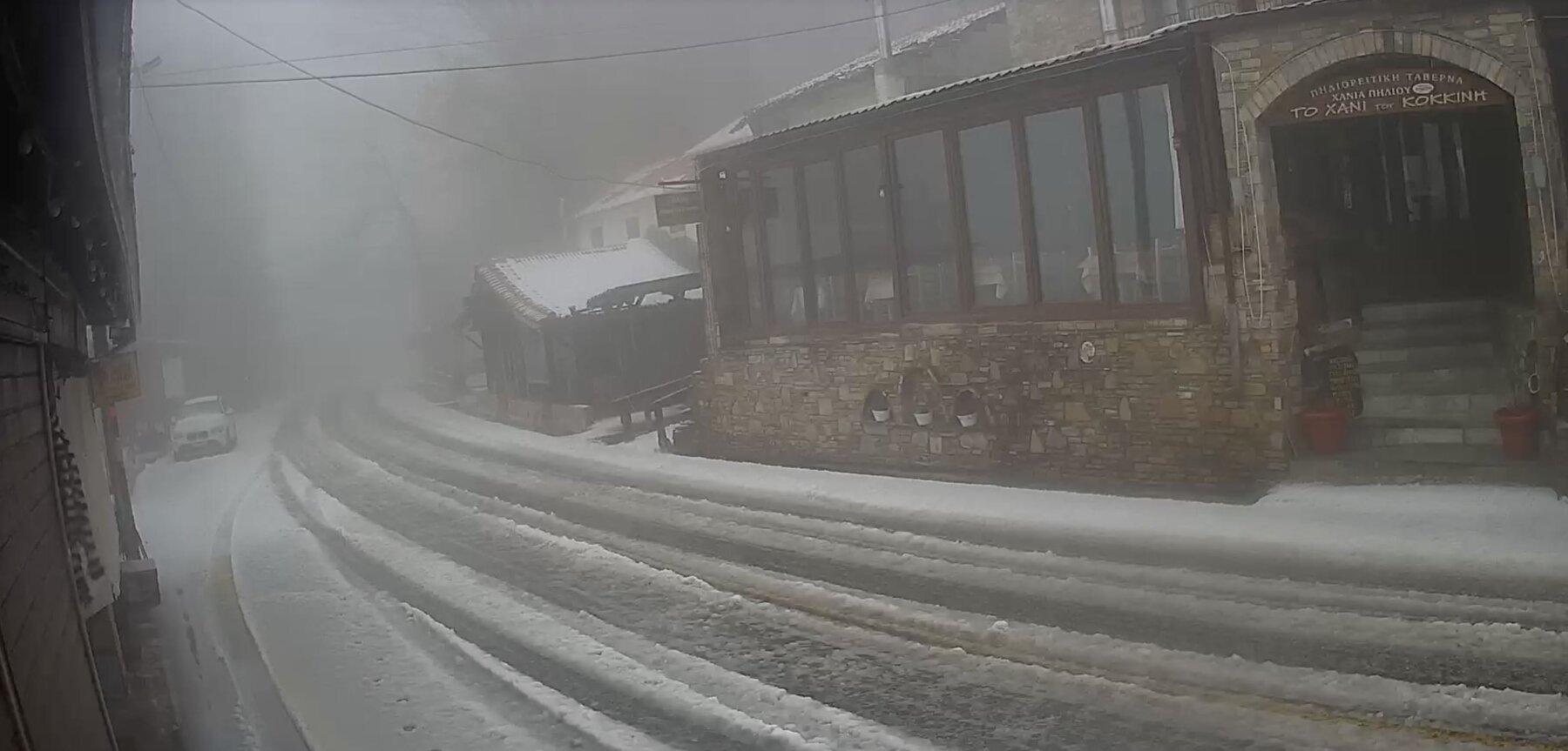 Χιονόπτωση σημειώθηκε κατά την διάρκεια της νύχτας στα Χάνια Πηλίου, με το θερμόμετρο να πέφτει κάτω από τους 0 βαθμούς Κελσίου.