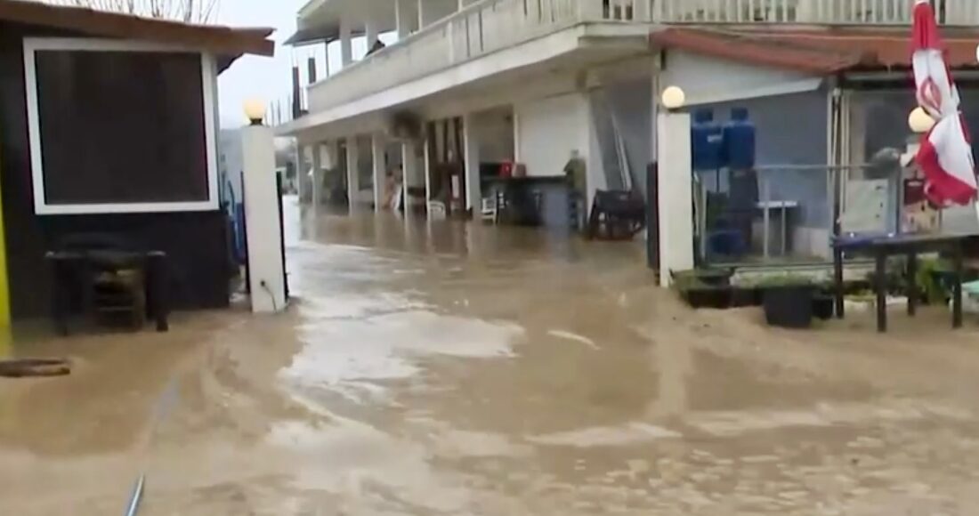 Η παραλιακή ζώνη στον Αγιόκαμπο έχει πλημμυρίσει, καθώς όλα τα ρέματα κατεβάζουν νερό. Η αστυνομία έχει βάλει σήμανση στα σημεία, ενώ ζητά από τους πολίτες να περιορίσουν τις μετακινήσεις τους.