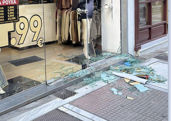 Αγνωστος ή άγνωστοι δράστες εισέβαλαν σε μαγαζί στην οδό Σπυρίδη με Σωκράτους σπάζοντας την κύρια είσοδο.