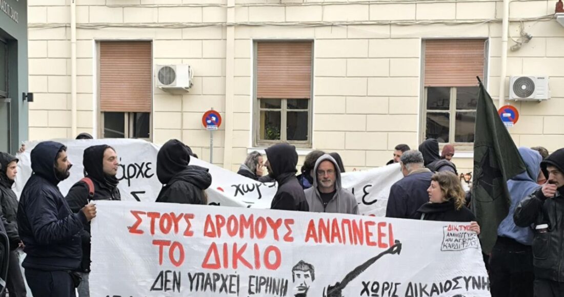 Αμέσως μετά την ολοκλήρωση της δίκης, ξεκινά πορεία από τους συγκεντρωμένους στο κέντρο της Καρδίτσας.