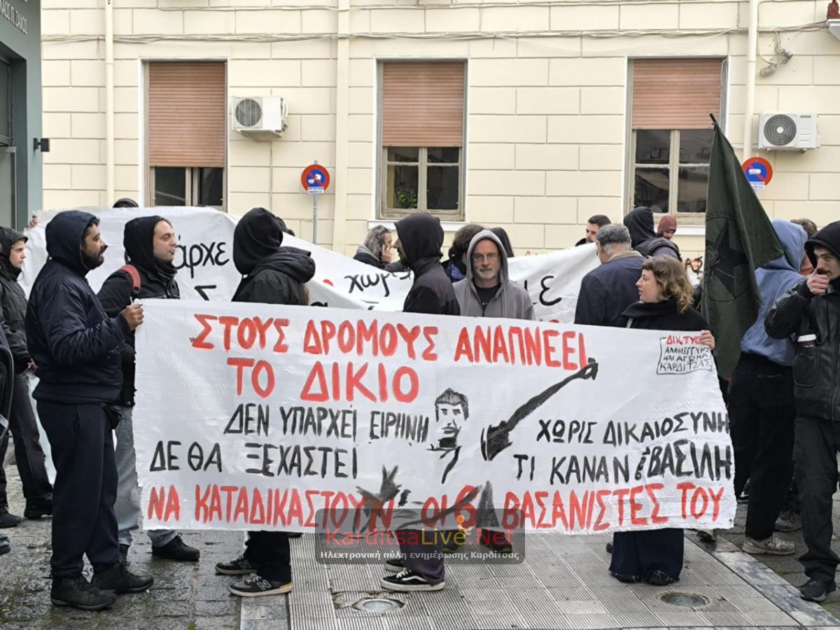 Αμέσως μετά την ολοκλήρωση της δίκης, ξεκινά πορεία από τους συγκεντρωμένους στο κέντρο της Καρδίτσας.