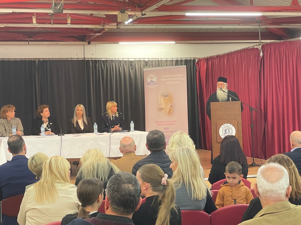 Στην ημερίδα συμμετείχαν και απηύθυναν χαιρετισμούς η ευρωβουλευτής Αφροδίτη Λατινοπούλου, ο Σεβασμιώτατος Μητροπολίτης Δημητριάδος και Αλμυρού κ.κ. Ιγνάτιος, η υπεύθυνη της Στέγης Μητέρας και Παιδιού Ράνια Γουρναροπούλου, η προϊσταμένη Εισαγγελέας Πρωτοδικών Βόλου Μαρία Σοφία Βαΐτση, η υπαστυνόμος Β΄ του Γραφείου Ενδοοικογενειακής Βίας της Διεύθυνσης Αστυνομίας Βόλου Δήμητρα Δημοπούλου, η σύμβουλος του Ξενώνα Φιλοξενίας Γυναικών Θυμάτων Βίας του Δήμου Βόλου Θεοδώρα Πεσσιάνη και η κοινωνική λειτουργός της Κοινωνικής Υπηρεσίας «Βοήθεια στο Σπίτι» του Δήμου Αλμυρού Βάγια Καλοπήτα.