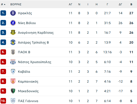 Την ίδια στιγμή ο Ηρακλής επικρατούσε με 1-0 της Καβάλας παραμένοντας στην κορυφή, ενώ σε απόσταση ενός βαθμούς παρέμεινε ο Αναγέννηση Καρδίτσας που επικράτησε με 2-1 του ΠΑΟΚ Β’ στο ουδέτερο γήπεδο της Λιβαδιάς.