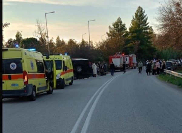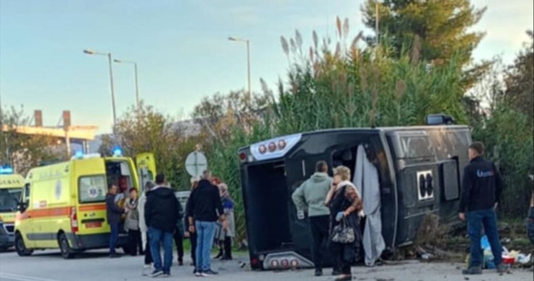 Κάτω από άγνωστες συνθήκες το λεωφορείο εξετράπη από την πορεία του και ανατράπηκε,