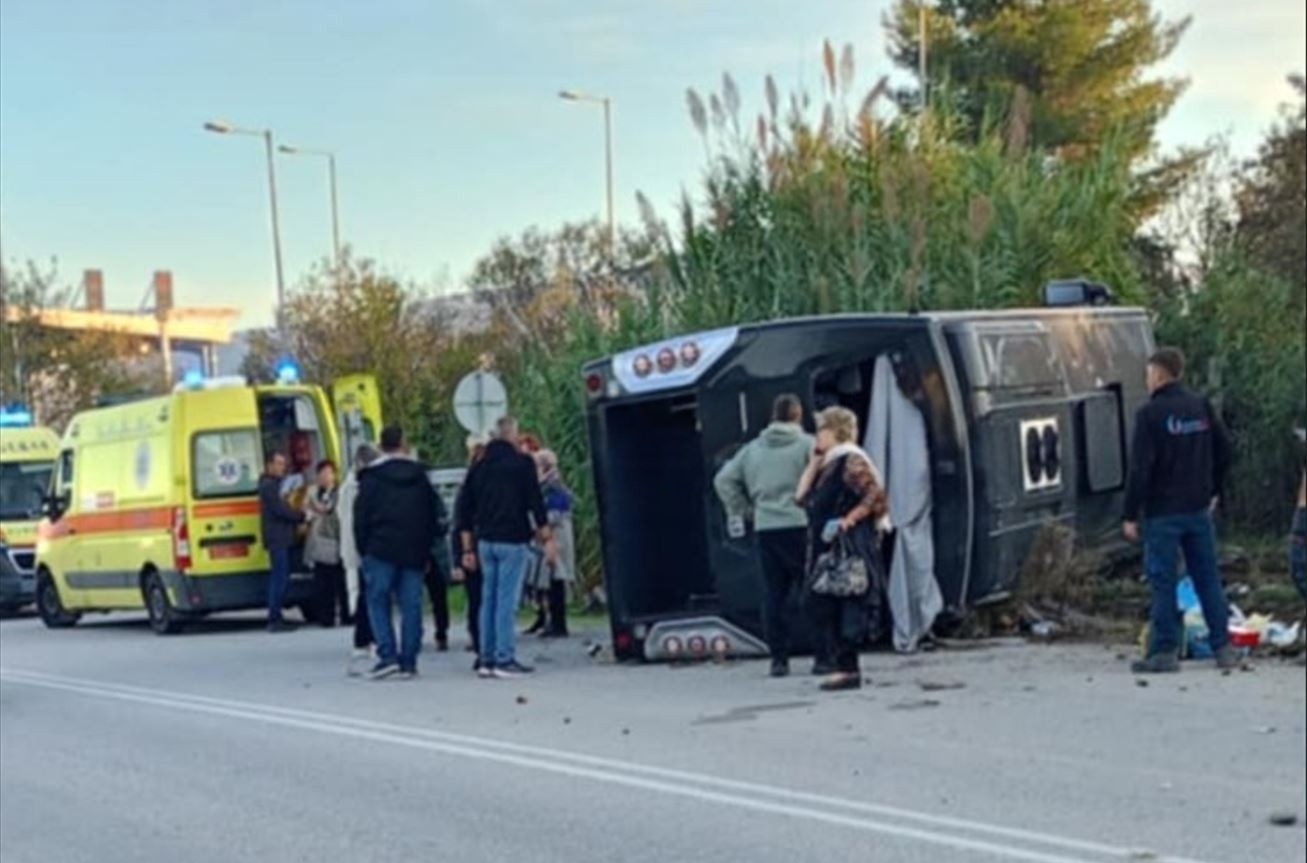 Κάτω από άγνωστες συνθήκες το λεωφορείο εξετράπη από την πορεία του και ανατράπηκε,