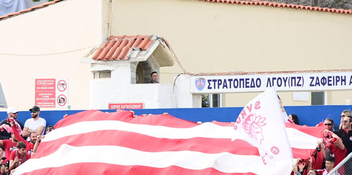 Ο αγώνας ανάμεσα στον Ολυμπιακό και την Ελλάς Σύρου, είναι από μόνος του ένα ιδιαίτερο και σπάνιο γεγονός για την κυκλαδίτικη πρωτεύουσα. Ακόμη πιο σπάνια, ωστόσο, ήταν η στιγμή που παρακολουθήσαμε στους τηλεοπτικούς μας δέκτες λίγα λεπτά πριν την έναρξη του αγώνα.