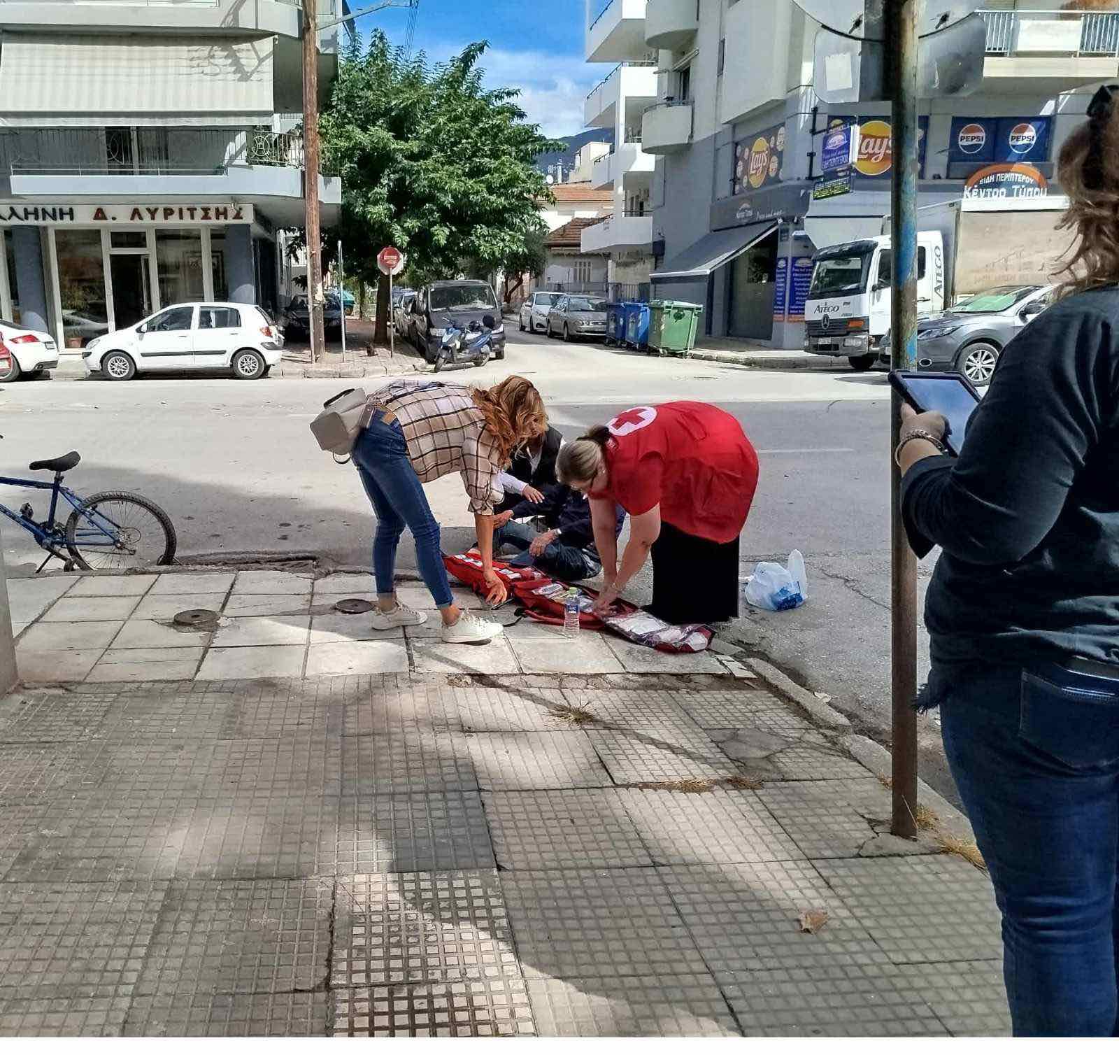 Από το σημείο που έγινε το συμβάν, στη συμβολή των οδών Αναλήψεως με Βασσάνη, έτυχε να περνά κλιμάκιο του Ερυθρού Σταυρού, που αμέσως σταμάτησε και παρείχε πρώτες βοήθειες στον άτυχο άντρα.