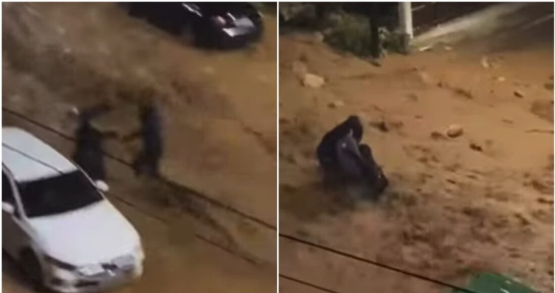 Σύμφωνα με μαρτυρίες και βίντεο που κυκλοφορούν, η γυναίκα επιχείρησε να διασχίσει πεζή δρόμο που είχε μετατραπεί σε χείμαρρο. Τα νερά είχαν φουσκώσει επικίνδυνα και απειλούσαν να την παρασύρουν. Την κρίσιμη στιγμή, δύο άνδρες έπεσαν μέσα στα ορμητικά νερά, ρισκάροντας τη ζωή τους, και κατάφεραν να την τραβήξουν από τα χέρια και να τη βγάλουν σε ασφαλές σημείο, αποτρέποντας την παράσυρσή της.