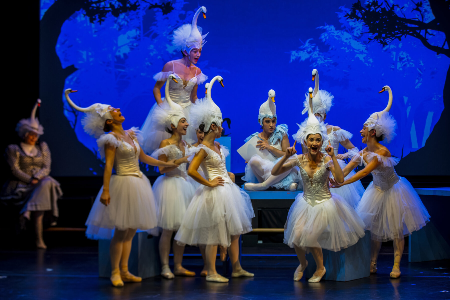 Ιζαντόρα: Λυδία Στέφου, Ιώ Λατουσάκη • Δασκάλα – Αφηγήτρια, Κυρία Χόιτυ Τόιτυ, Κυρία Παπώφ: Μαργαρίτα Συγγενιώτου • Κύριος Κουντεπιέ: Μάριος Σαραντίδης • Μαθήτρια, Κύκνος, Παπίτσα: Ματίνα Καϊάφα • Μαθήτρια, Κύκνος, Πιπίτσα: Γεωργία Κυριαζή • Μαθήτρια, Κύκνος, Νεαρή πάπια: Ραφαέλα Τσομπανούδη • Μαθήτρια, Κύκνος, Αλεπού: Ηλιάνα Υφαντή • Μαθήτρια, Κύκνος, Κυνηγός, Πολύχρωμο πουλί της λίμνης: Μυρσίνη Πετρούτσου • Μαθήτριες, Κύκνοι, Πολύχρωμα πουλιά της λίμνης: Ιωάννα Λουπέτη, Άννα Μαρία Μαρκοπούλου, Ελένη Φώτου • Βάτραχος, Λύκος: Χρήστος Ντέντης (Onel)