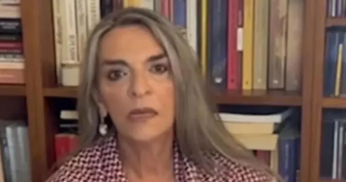 Η εικόνα της κας Πέρκα να δηλώνει ότι έχει απαχθεί από τους Ισραηλινούς φορώντας μια παλαιστινιακή μαντήλα, μακιγιαρισμένη, με φόντο τη βιβλιοθήκη στο σαλόνι της, έκανε αρκετούς στα social media να τη σχολιάσουν δηκτικά.