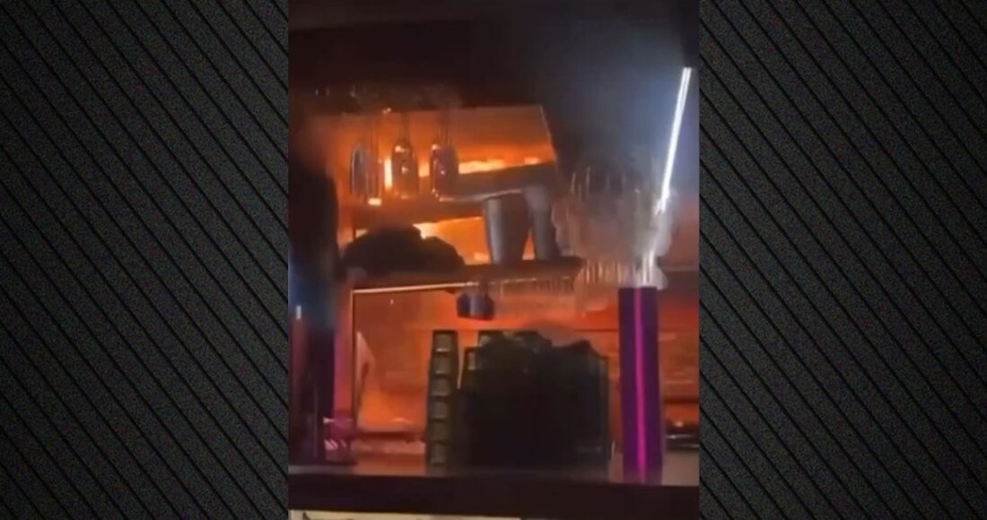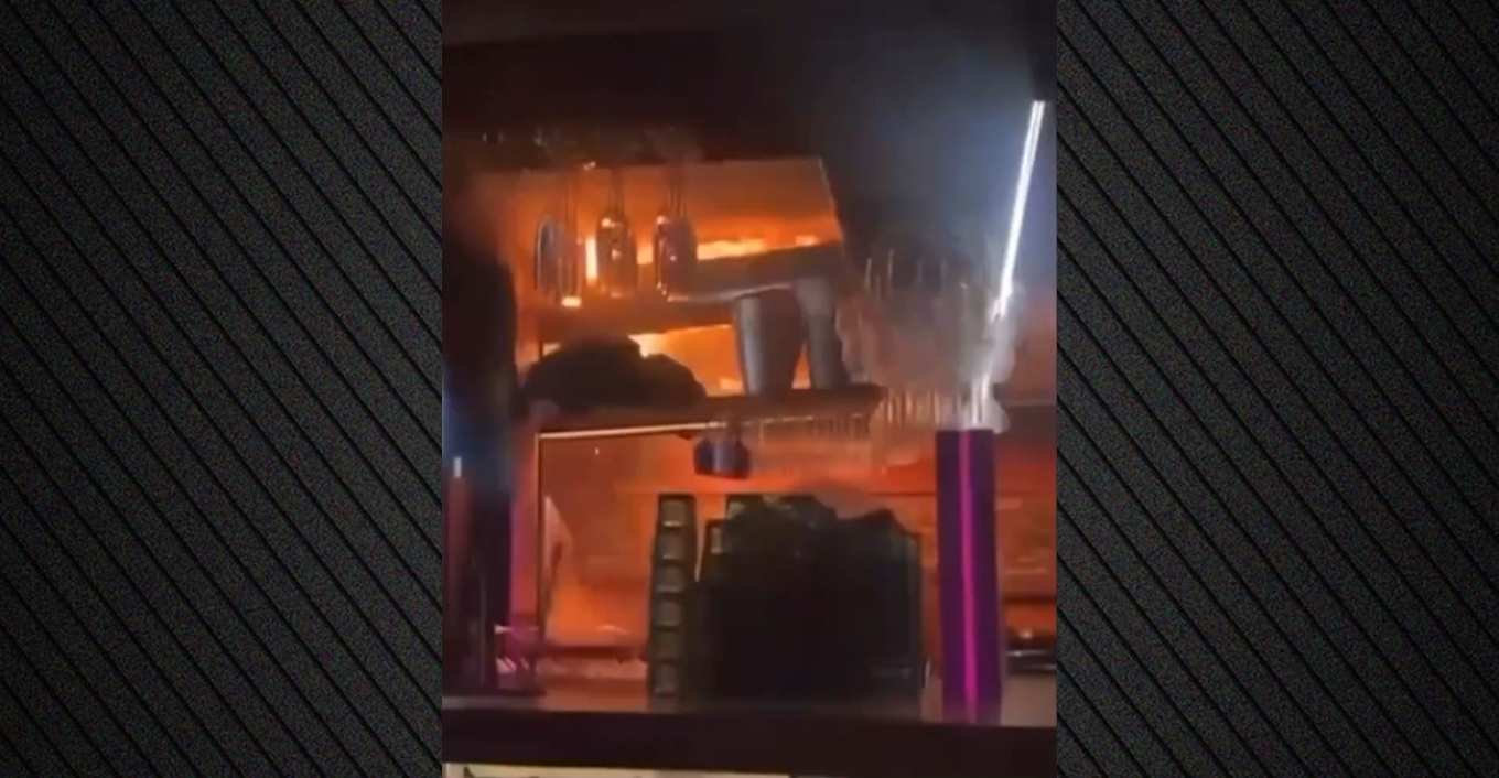 Στο βίντεο φαίνονται οι φλόγες να εξαπλώνονται στην οροφή του κτιρίου, ενώ παράλληλα ακούγεται μουσική και διακρίνονται θαμώνες να φεύγουν από τον χώρο.