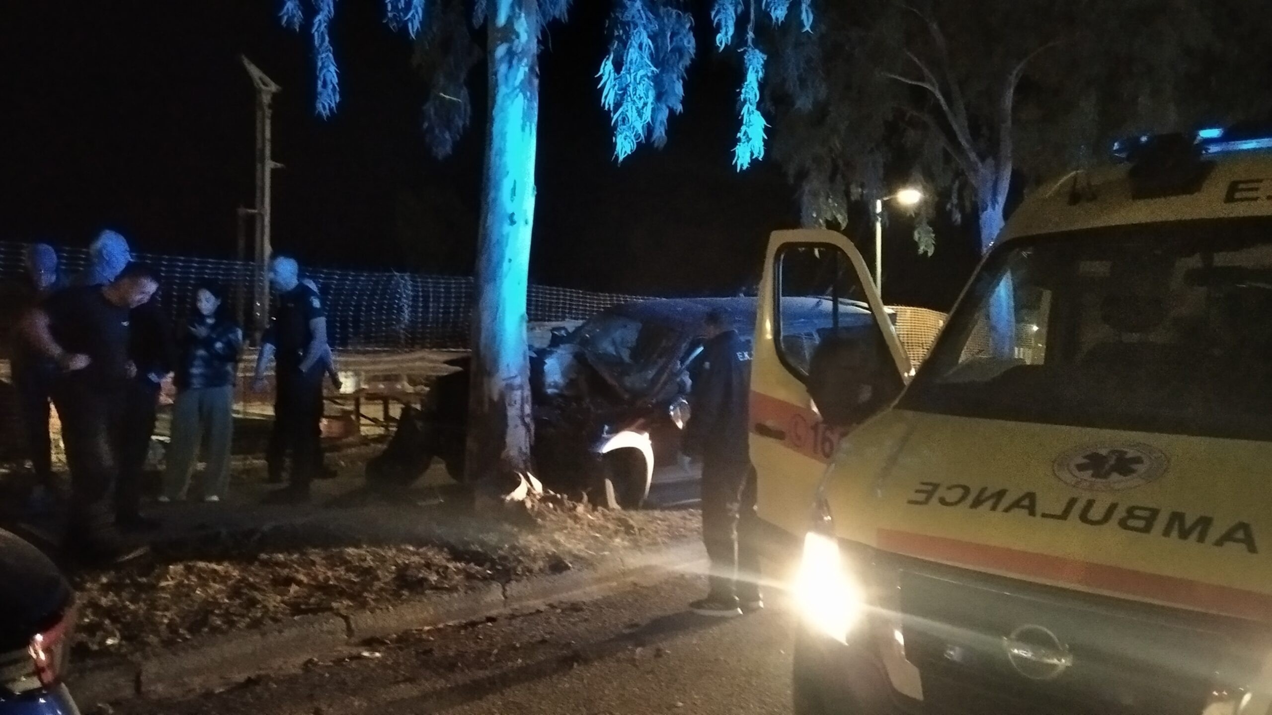 Όμως, ο έλεγχος χάθηκε. Το κλεμμένο τζιπ εξετράπη της πορείας του, ανέβηκε στο πεζοδρόμιο και καρφώθηκε με ορμή σε δέντρο. Η σύγκρουση ήταν σφοδρή. Το μπροστινό μέρος διαλύθηκε, το παρμπρίζ θρυμματίστηκε και το όχημα σχεδόν κόπηκε στα δύο.