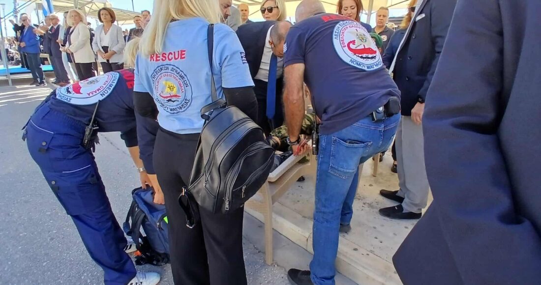 Ένα απρόοπτο περιστατικό σημειώθηκε κατά τη διάρκεια της σημερινής παρέλασης της 28ης Οκτωβρίου στον Βόλο, όταν ένας στρατιώτης που στεκόταν σε στάση προσοχής μπροστά στην εξέδρα των επισήμων έχασε τις αισθήσεις του και κατέρρευσε.