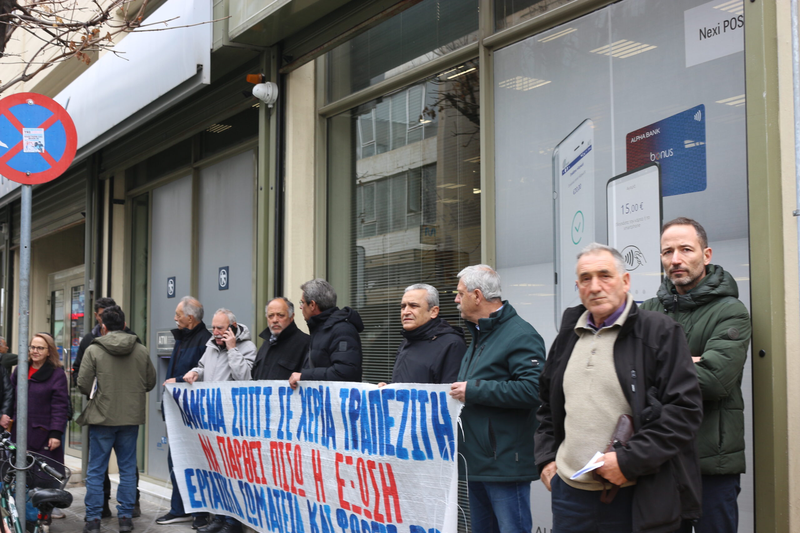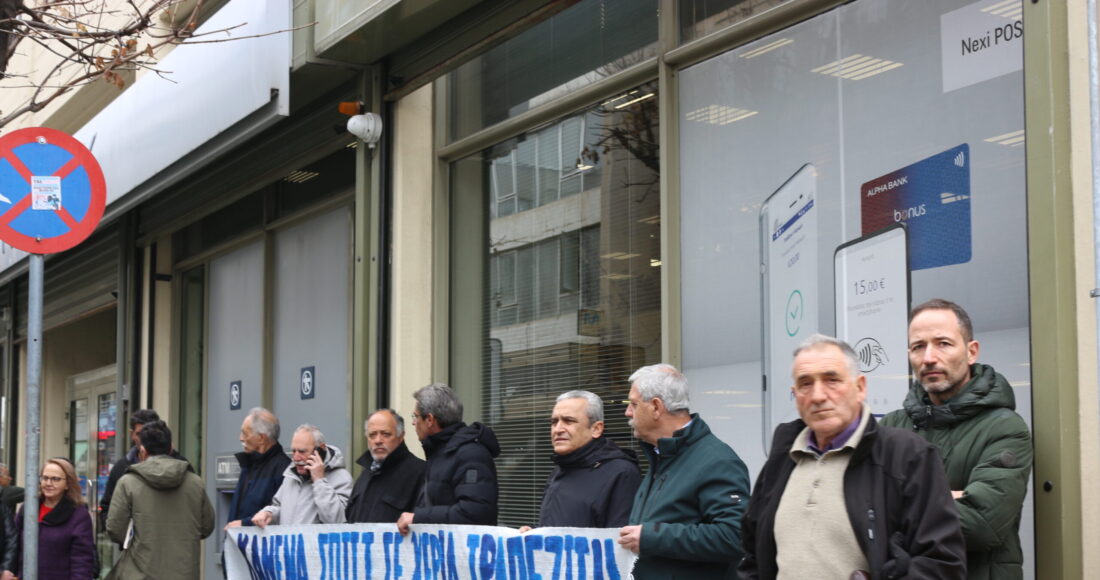 Σε κλίμα έντονης διαμαρτυρίας αλλά και αλληλεγγύης, ταξικά σωματεία και συλλογικοί φορείς συγκεντρώθηκαν την Πέμπτη έξω από υποκατάστημα τράπεζας στον Βόλο, αντιδρώντας στην έξωση τετραμελούς οικογένειας από τη Μακρυρράχη, η οποία έχασε την πρώτη κατοικία της έπειτα από πλειστηριασμό.