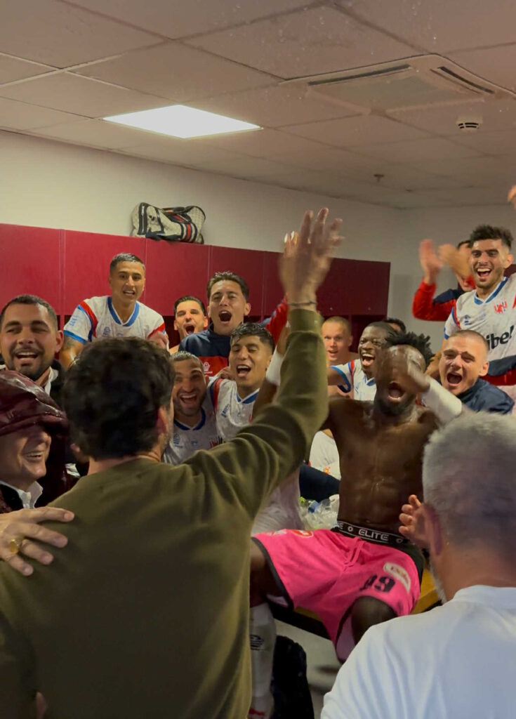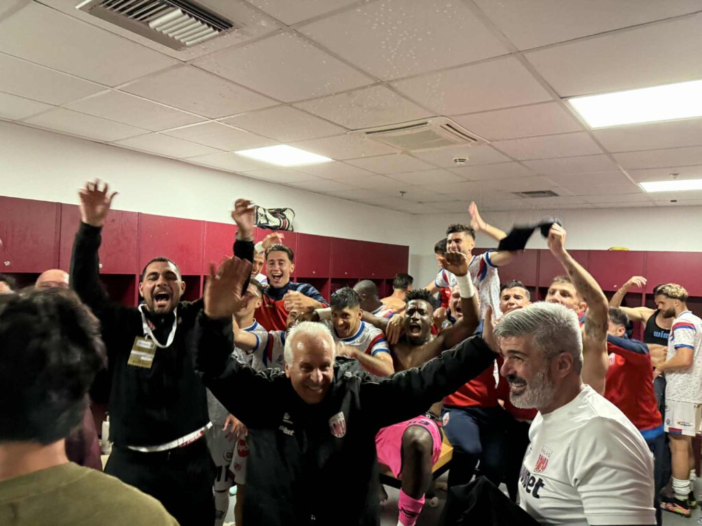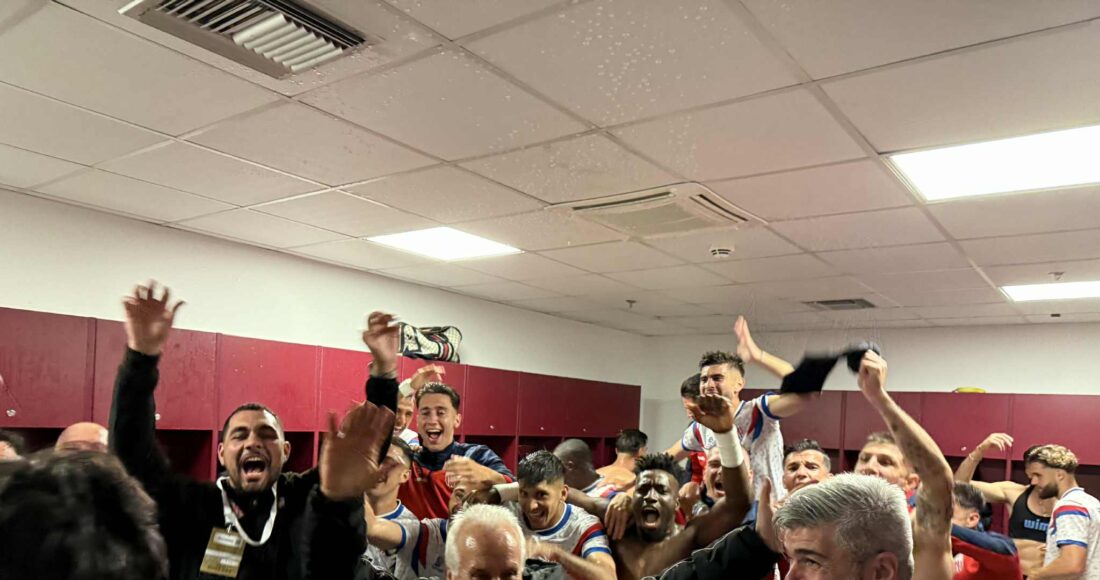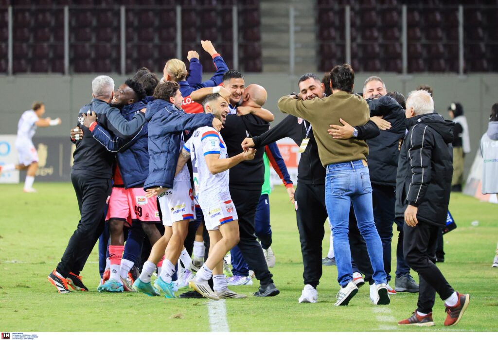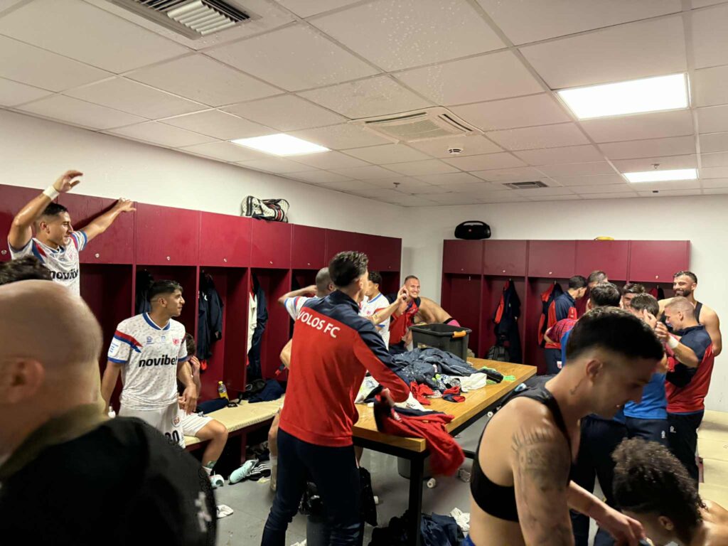 Με το τελευταίο “σφύριγμα” του Τάσου Παπαπέτρου, παίκτες και τεχνικό επιτελείο πανηγύρισαν σαν μικρά παιδιά τη σπουδαία νίκη της ομάδας τους, ενώ το ”γλέντι” μεταφέρθηκε και στα αποδυτήρια.