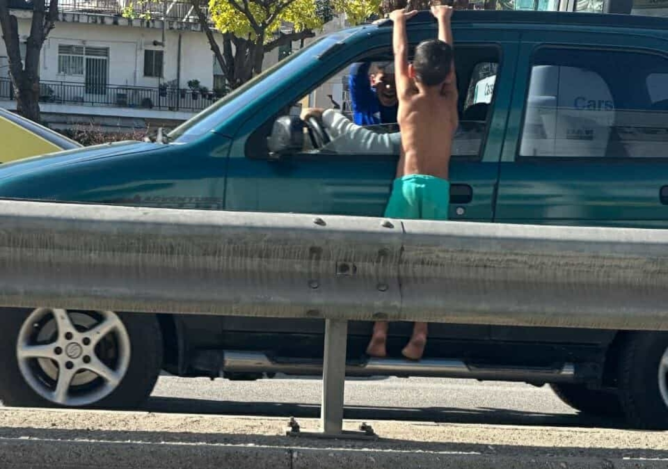 Όπως αναφέρει το tempo24.news, στην προσπάθειά τους να τους δώσουν οι διερχόμενοι οδηγοί χρήματα, σε ορισμένες περιπτώσεις κρεμιούνται από τα οχήματα που είναι εν κινήσει.
