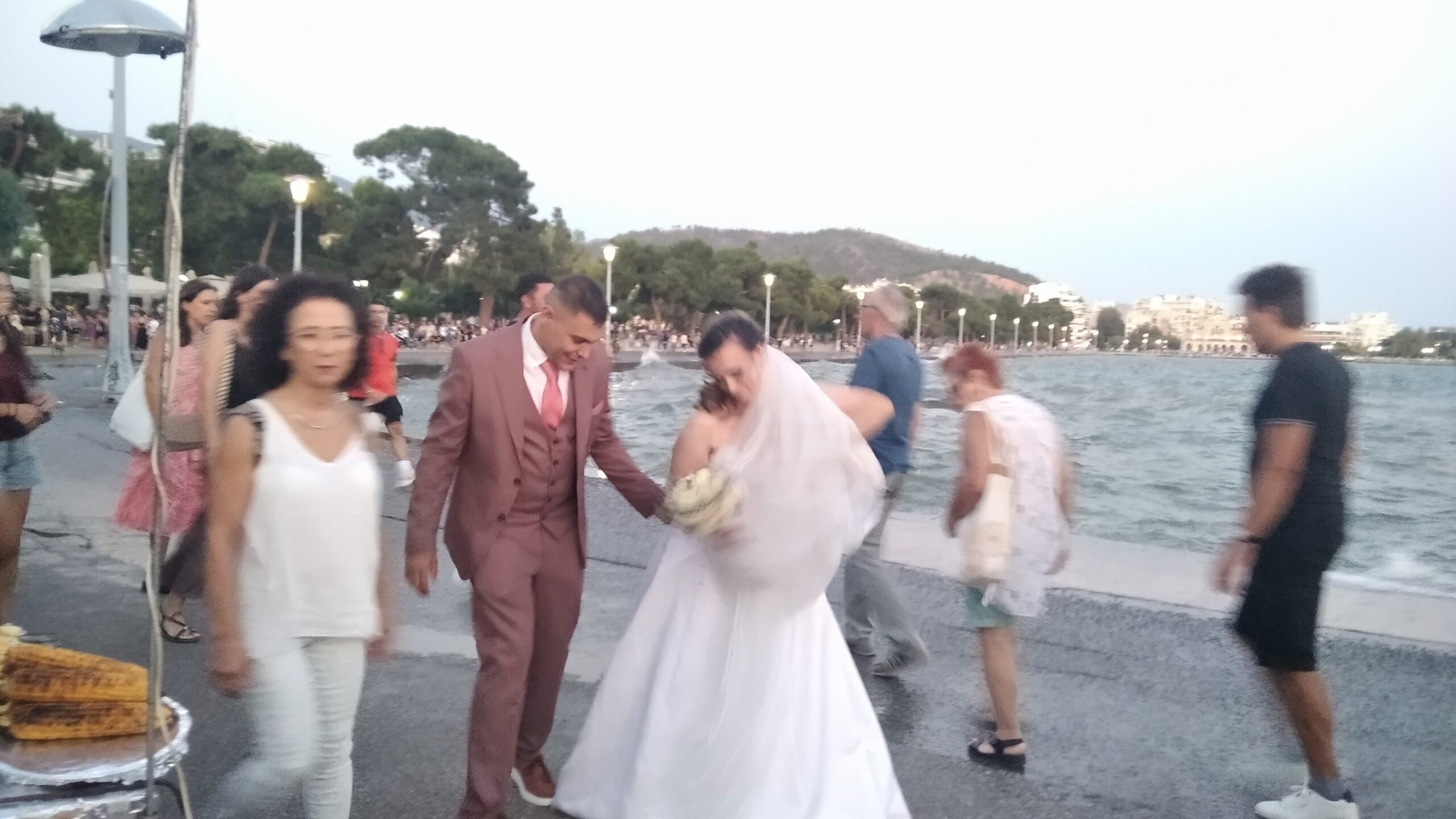 Μόλις είχε ολοκληρωθεί το μυστήριο γάμου για ζευγάρι στον Βόλο, στον Ιερό Ναό Αγίου Κωνσταντίνου. Εξερχόμενοι της εκκλησίας και αφού έπεσε το ρύζι πάνω τους, το ζευγάρι κατευθύνθηκε προς τους εκατοντάδες συγκεντρωμένους πολίτες, αυτή την ώρα, μπροστά από το μνημείο των Ηρώων, στην παραλία.