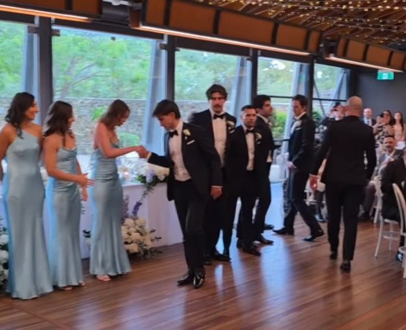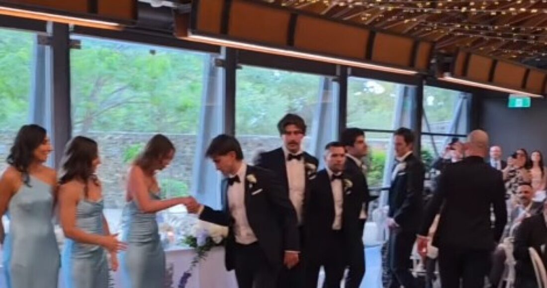 Ωστόσο αυτό που συνέβη στην Αδελαΐδα, όπου το soccer δεν είναι και το πλέον δημοφιλές άθλημα, δεν έχει προηγούμενο, καθώς ο γαμπρός και οι ποδοσφαιρόφιλοι φίλοι του άφησαν τους πάντες άφωνους κατά την είσοδο τους στο Εθνικό Κέντρο Οίνου της πόλης της Αυστραλίας, όπου φιλοξενήθηκε η δεξίωση