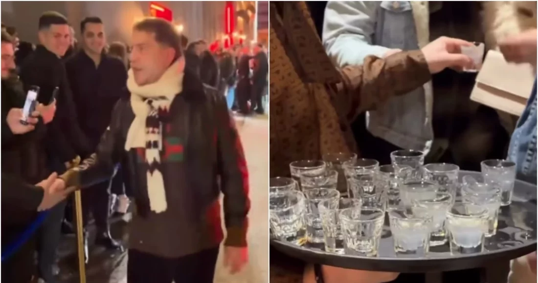 Στη συνέχεια, ο τραγουδιστής τόνισε «φέρνω σφηνάκια για να ζεσταθείτε παιδιά» και όπως καταγράφεται στο βίντεο, ένας σερβιτόρος βγήκε στον δρόμο με ένα γεμάτο δίσκο από σφηνάκια, τα οποία προσέφεραν στον κόσμο, έπειτα από πρωτοβουλία του τραγουδιστή. «Οινόπνευμα φτηνό» έγραψε ο καλλιτέχνης στο Instagram story του, χρησιμοποιώντας τον τίτλο από κομμάτι που έχει τραγουδήσει.