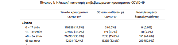 Στις 15 Νοεμβρίου συγκριτικά με την 1η Νοεμβρίου, μέσα σε 15 ημέρες δηλαδή οι θάνατοι στην ηλικιακή ομάδα 65+ αυξήθηκαν κατά 708 ενώ στην ομάδα 40-64 κατά 128 και στην ομάδα 18-39 μόλις κατά 12.