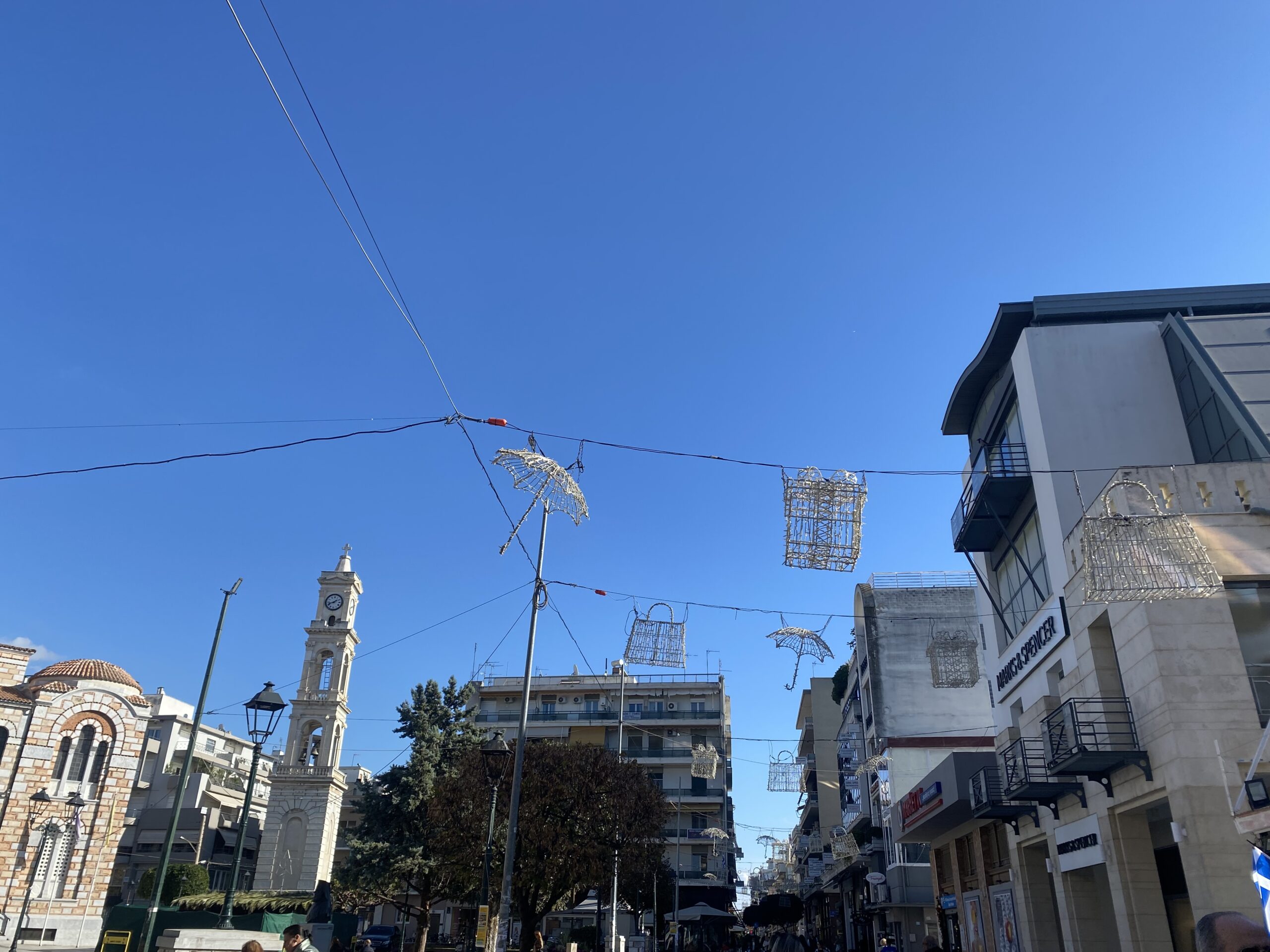Τα συνεργεία εργάζονται πυρετωδώς για τον στολισμό της πόλης. Κεντρικές οδικές αρτηρίες της πόλης αλλά και πεζόδρομοι «σκεπάζονται» από τον εντυπωσιακό «μπλε ουρανό». Θα τον δούμε και φέτος στην Ιάσονος, στη Δημητριάδος, στην Κουμουνδούρου, την Γκλαβάνη, την Αγίου Νικολάου, την Σπ. Σπυρίδη, την Τάκη Οικονομάκη, στην Ερμού μπροστά από τον Μητροπολιτικό Ναό του Αγίου Νικολάου,στην Λεωφόρο Ειρήνης στη Ν. Ιωνία. Ηδη στα περισσότερα σημεία έχει ολοκληρωθεί η εγκατάστασή του και τις επόμενες ημέρες αναμένονται τα πρώτα τεστ.