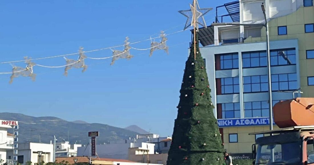 Από χθες ξεκίνησε το στήσιμο του χριστουγεννιάτικου δέντρου και αναμένεται να πάρει τη θέση του και ο ιπτάμενος Αη Βασίλης δίπλα από τον κυκλικό κόμβο του δημαρχείου.