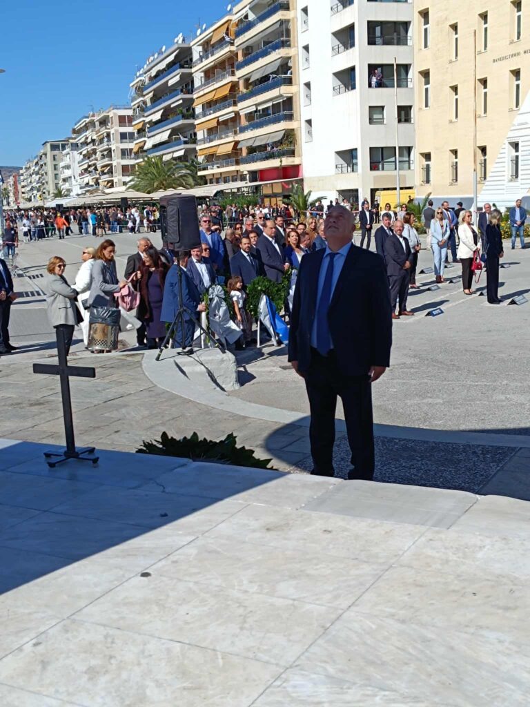 Πριν από λίγη ώρα, πραγματοποιήθηκε η κατάθεση στεφάνων στο Ηρώο της παραλίας, παρουσία των στρατιωτικών και πολιτικών αρχών της πόλης, εκπροσώπων φορέων, μαθητών και πλήθους πολιτών που κατέκλυσαν την παραλία του Βόλου.
