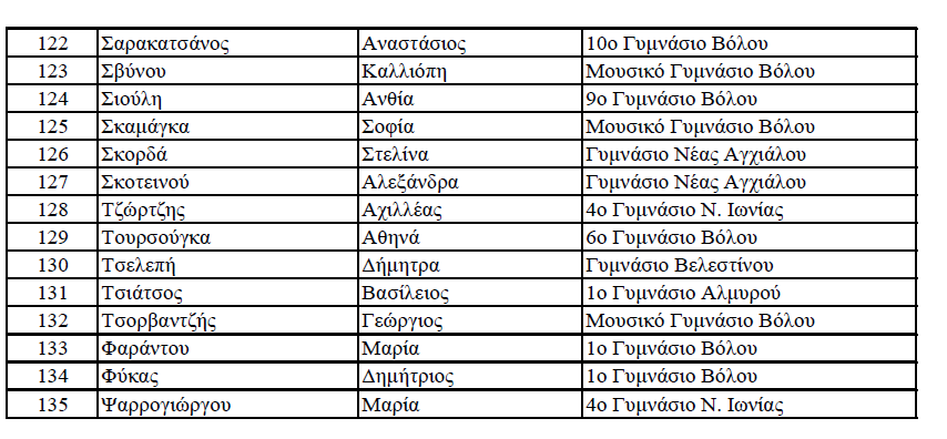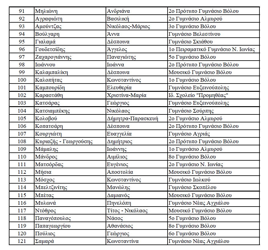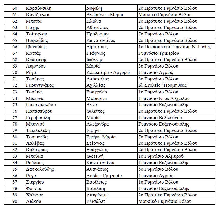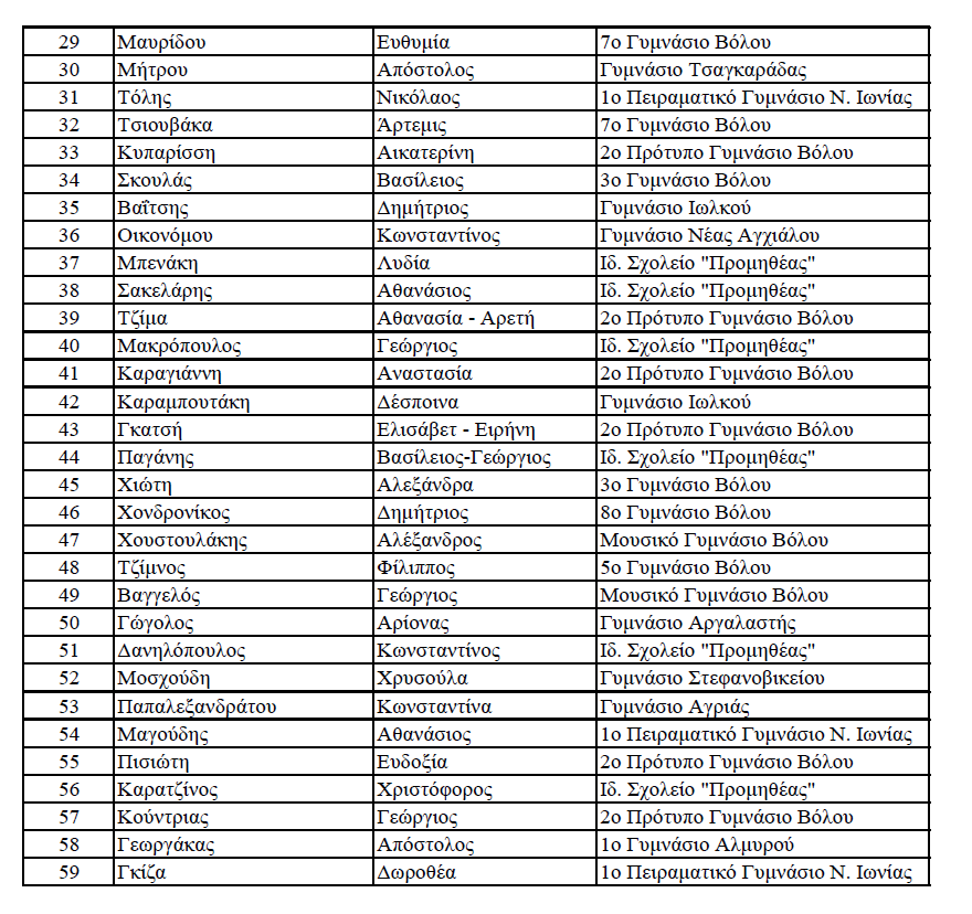 Οι διακριθέντες μαθητές και μαθήτριες
