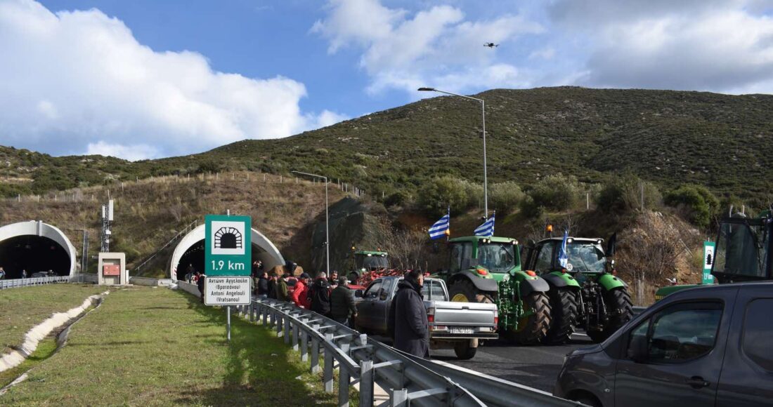 Τρακτέρ και αγροτικά μηχανήματα παραμένουν παρατεταγμένα στη σήραγγα, με τη συμμετοχή του μπλόκου της Νίκαιας, στο πλαίσιο της κλιμάκωσης των κινητοποιήσεών τους.
