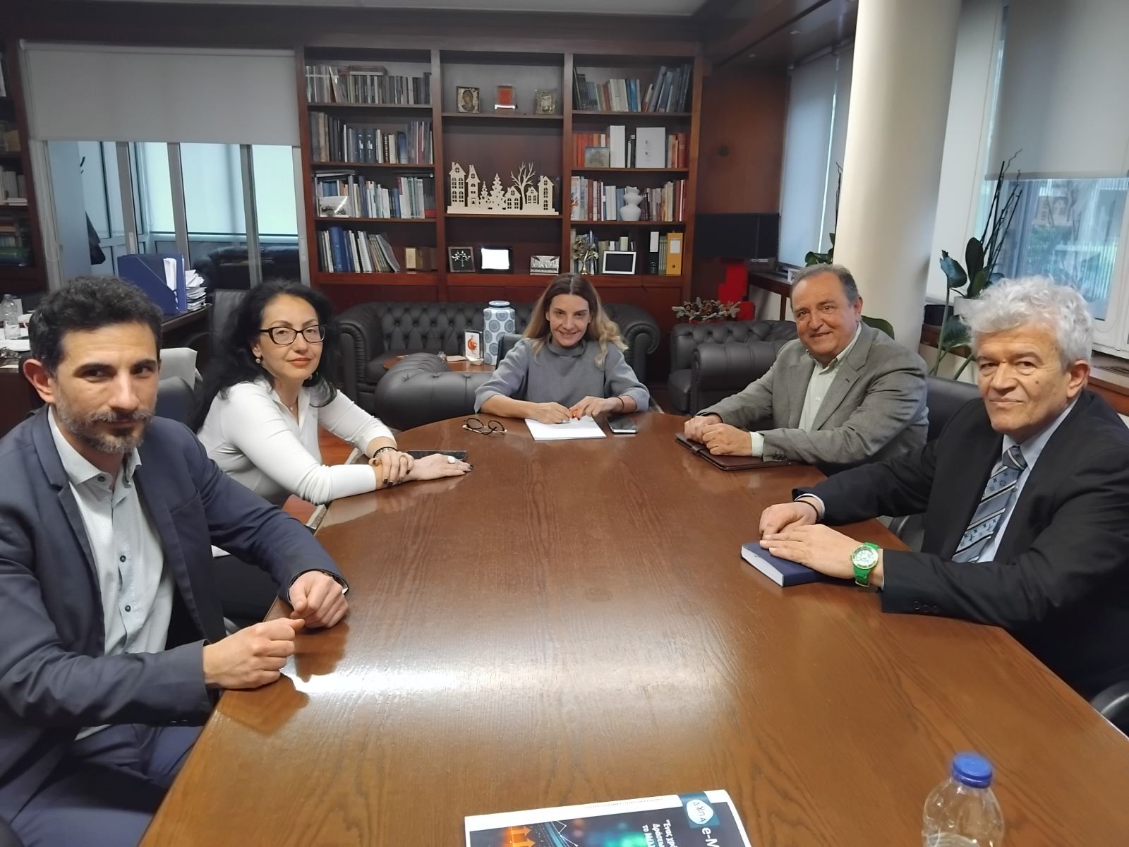 Στην φωτογραφία: η Διοικήτρια της ΔΥΠΑ, κα. Γιάννα Χορμόβα, ο Προϊστάμενος Γ. Διεύθυνσης Πολιτικών Εργατικού Δυναμικού, κ. Κωνσταντίνος Γεώρμας, η αναπληρώτρια προϊσταμένη τμήματος ασφάλισης, κα. Γλυκερία Τερζή, & από την Ένωση Ξενοδόχων Μαγνησίας, ο Πρόεδρος, κ. Γιώργος Ζαφείρης και ο Αντιπρόεδρος, κ. Γιώργος Μποτσιβάλης.