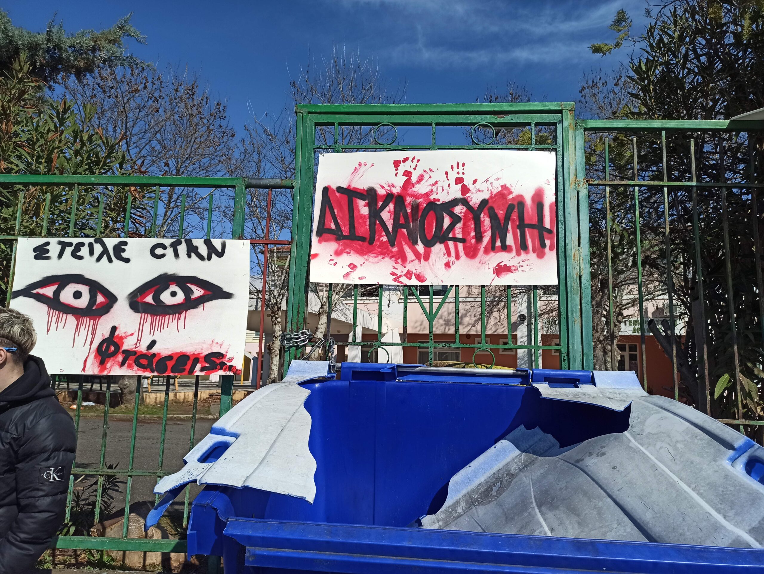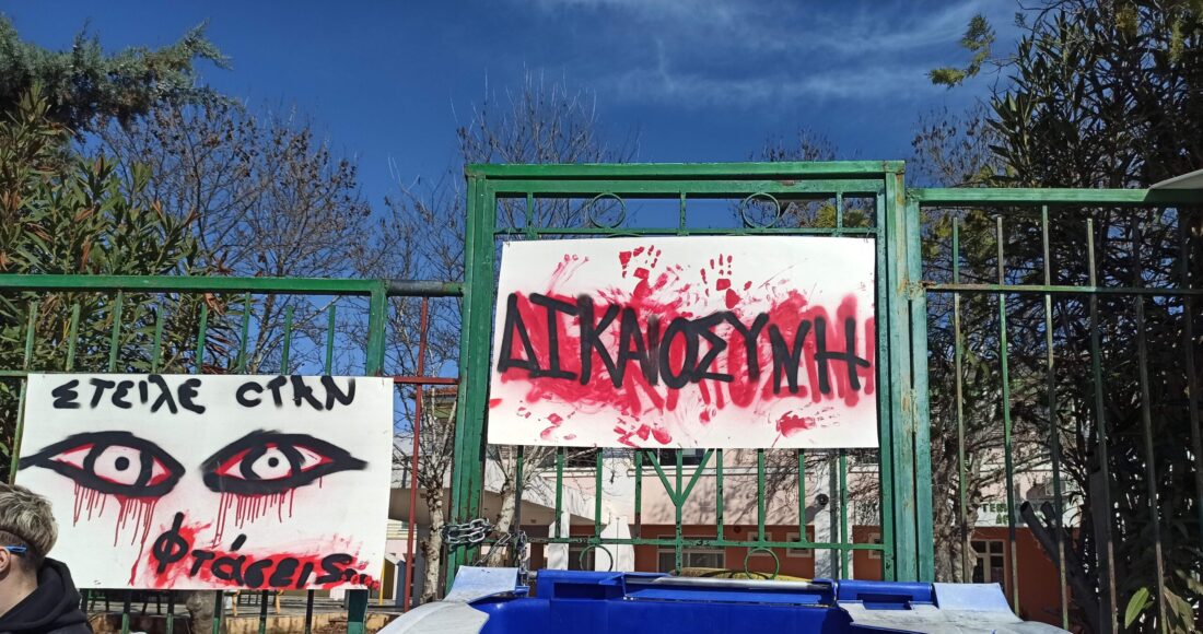 «Οι μαθητές δεν ξεχνάμε τους 57 νεκρούς των Τεμπών! Κρατάμε την υπόσχεσή μας, όλων των νεκρών γινόμαστε η φωνή το έγκλημα αυτό δε θα συγκαλυφθεί! Δεν συγχωρούμε τους υπεύθυνους, το κράτος, την κυβέρνηση, τις οδηγίες της ΕΕ από το πολύνεκρο δυστύχημα των Τεμπών», λένε.
