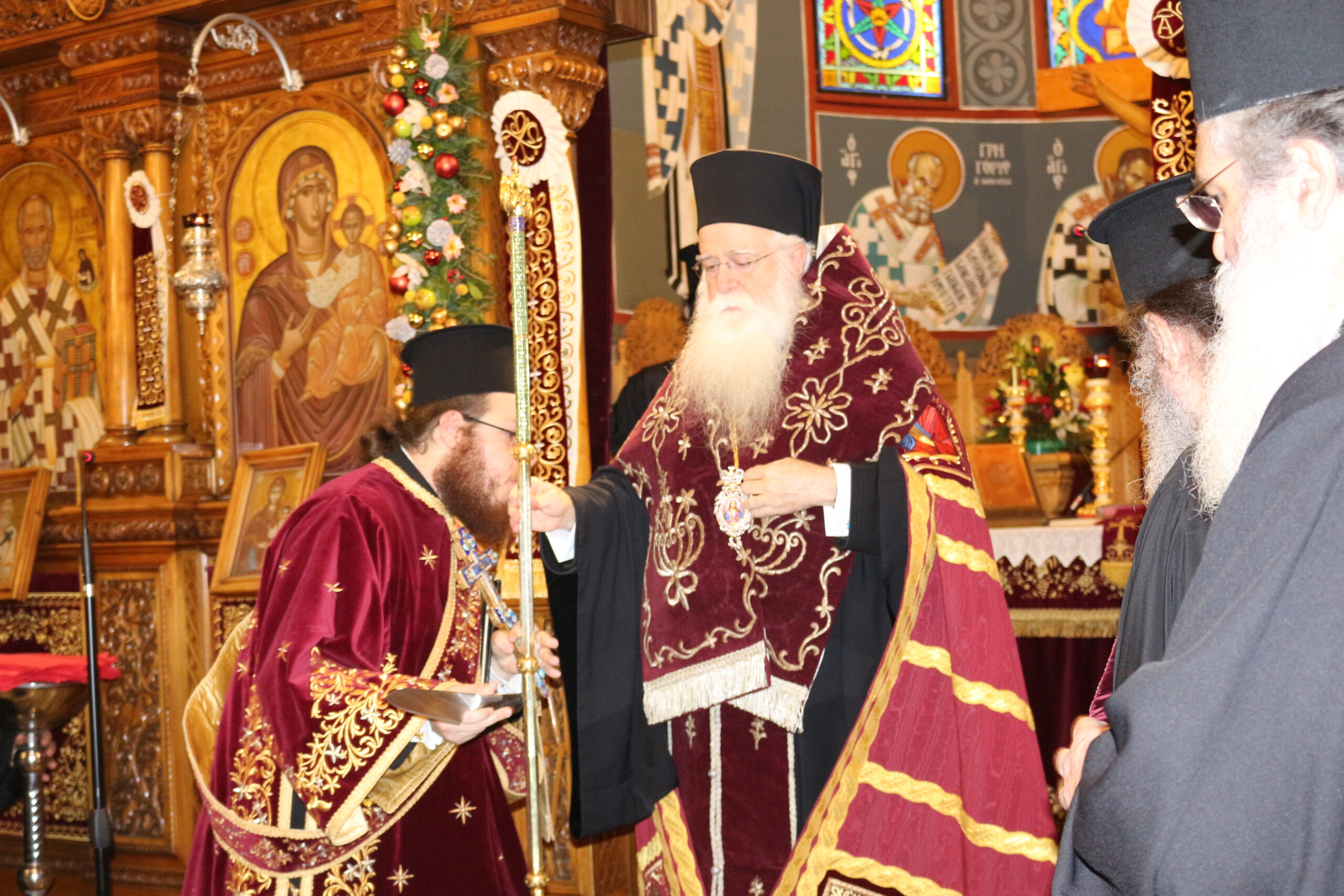 Περιστοιχισμένος από αρχιμανδρίτες και σύσσωμο τον κλήρο ο κ. Ιγνάτιος ευχήθηκε σε όλους χρόνια πολλά και στη συνέχεια κάλεσε τους πολιτικούς εκπροσώπους του νομού, τη στρατιωτική ηγεσία, τους αξιωματικούς της Αστυνομίας, της Πυροσβεστικής και του Λιμενικού να παραλάβουν το κομμάτι της πίτας που είχε προηγουμένως κόψει για εκείνους.