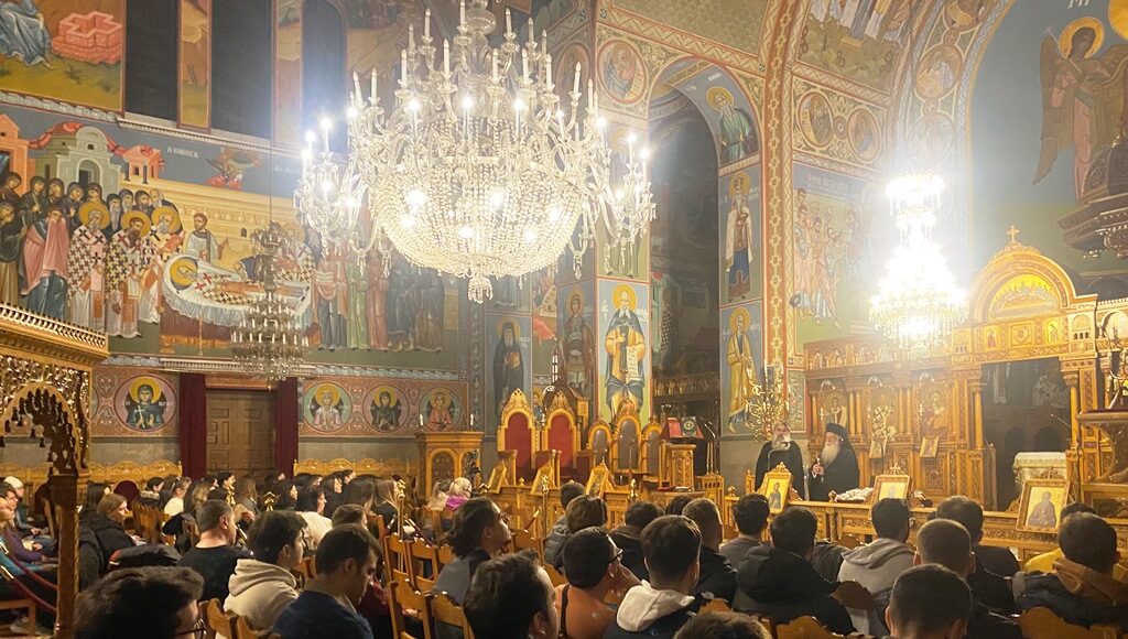 Στη σύναξη των Φοιτητών και Νέων του Ιερού Μητροπολιτικού Ναού Αγίου Νικολάου Βόλου, που πραγματοποιήθηκε χθες, 11/1, υπό την ευθύνη του πρωτ. Χαριλάου Παπαγεωργίου, βρέθηκε ο Σεβ. Μητροπολίτης Δημητριάδος κ. Ιγνάτιος.