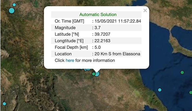 Ο σεισμός έγινε στις 14:57 το μεσημέρι με επίκεντρο 20 χιλιόμετρα νότια από την Ελασσόνα.