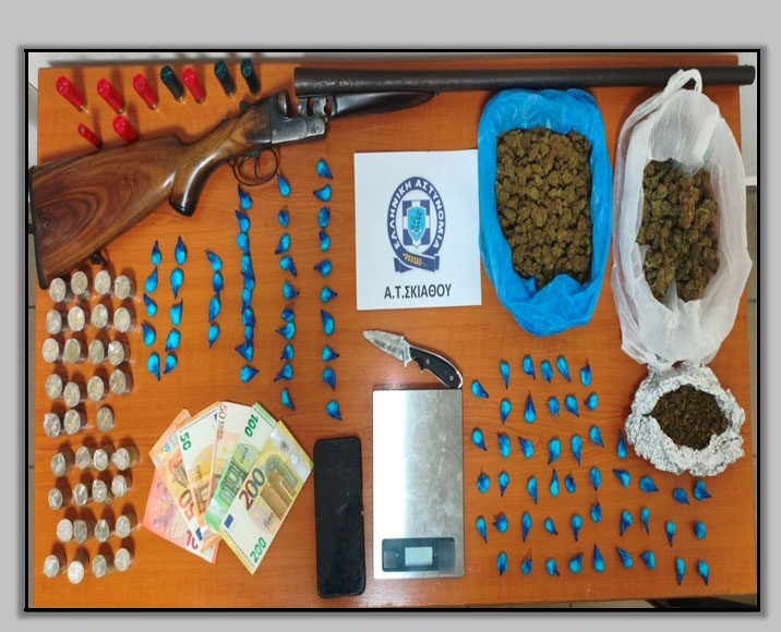 Συνελήφθη, χθες (7-11-2025) το μεσημέρι στην Σκιάθο, από αστυνομικούς του Αστυνομικού Τμήματος Σκιάθου, 36χρονος ημεδαπός, σε βάρος του οποίου σχηματίστηκε δικογραφία για παράβαση της νομοθεσίας περί ναρκωτικών και της νομοθεσίας περί όπλων.