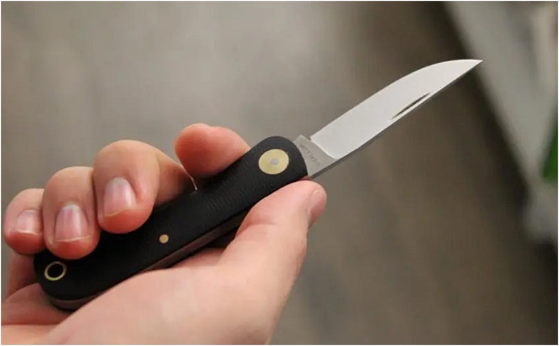 Ο σουγιάς που κρατούσε στα χέρια του κατασχέθηκε. Είναι αναδιπλούμενος με μήκος λάμας 5 εκατοστών, όπως διαπιστώθηκε. Είναι αδύνατο να τον βρήκε στο σπίτι, αφού δεν παραπέμπει σε μαχαίρι που χρησιμοποιείται για οικιακή χρήση.