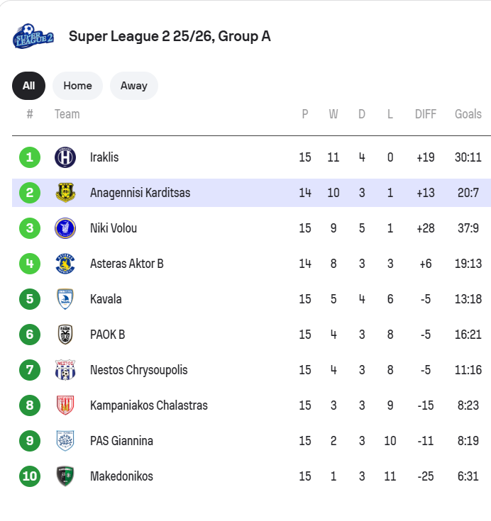 Αστέρας AKTOR B – Αν. Καρδίτσας (14.00 athletiko.gr, «Θ. Κολοκοτρώνης»)